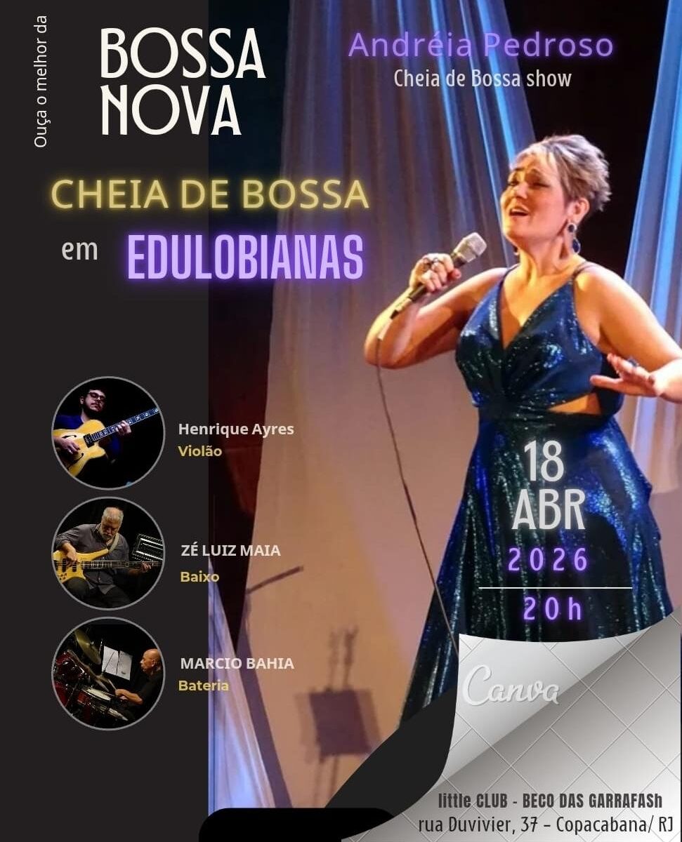 A cantora carioca Andréia Pedroso, intérprete da MPB e da Bossa Nova, apresenta o show CHEIA DE BOSSA, numa edição especial em homenagem a Edu Lobo, no próximo dia 18 de abril (sábado), no Little Club/Beco das Garrafas, berço da Bossa Nova e palco de muitas histórias de nossa cultura musical.